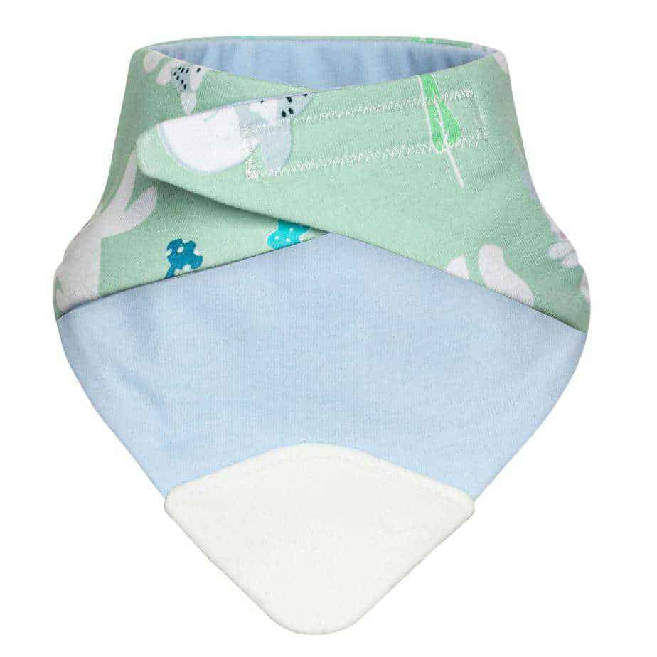 With its 3 layers of 100% cotton the dribble and chew teething bibs are ideal for droolers. Drool and teething go hand in hand, and often the drool can cause skin irritation if clothes become damp. This is where this teething bib steps in, it catches all the drool and absorbs it, rather than soaking through onto baby’s clothes.