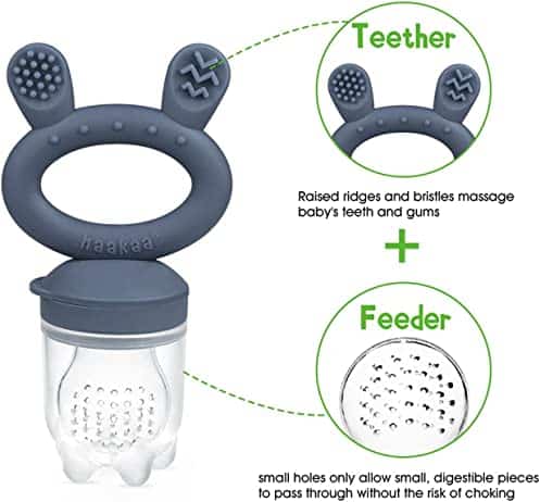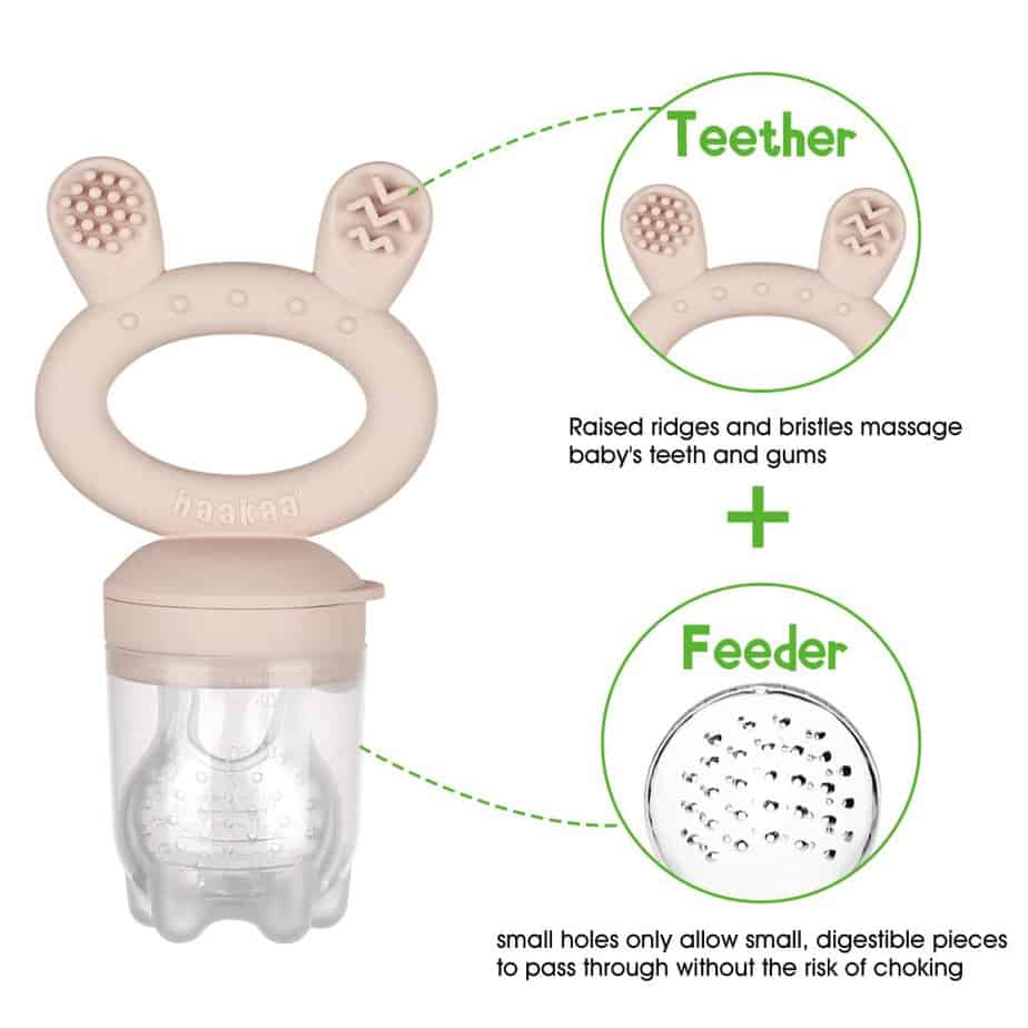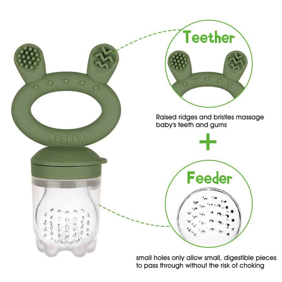 - Food Grade Silicone: Haakaa Teether feeder features the Whole Silicone Design, makes the feeder safe for your child to chew and suck on. BPA Free, Latex Free, Lead Free and Phthalates Free. Dish washer safe, boiled safe. Easy to use and clean