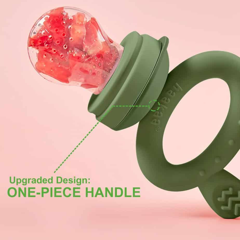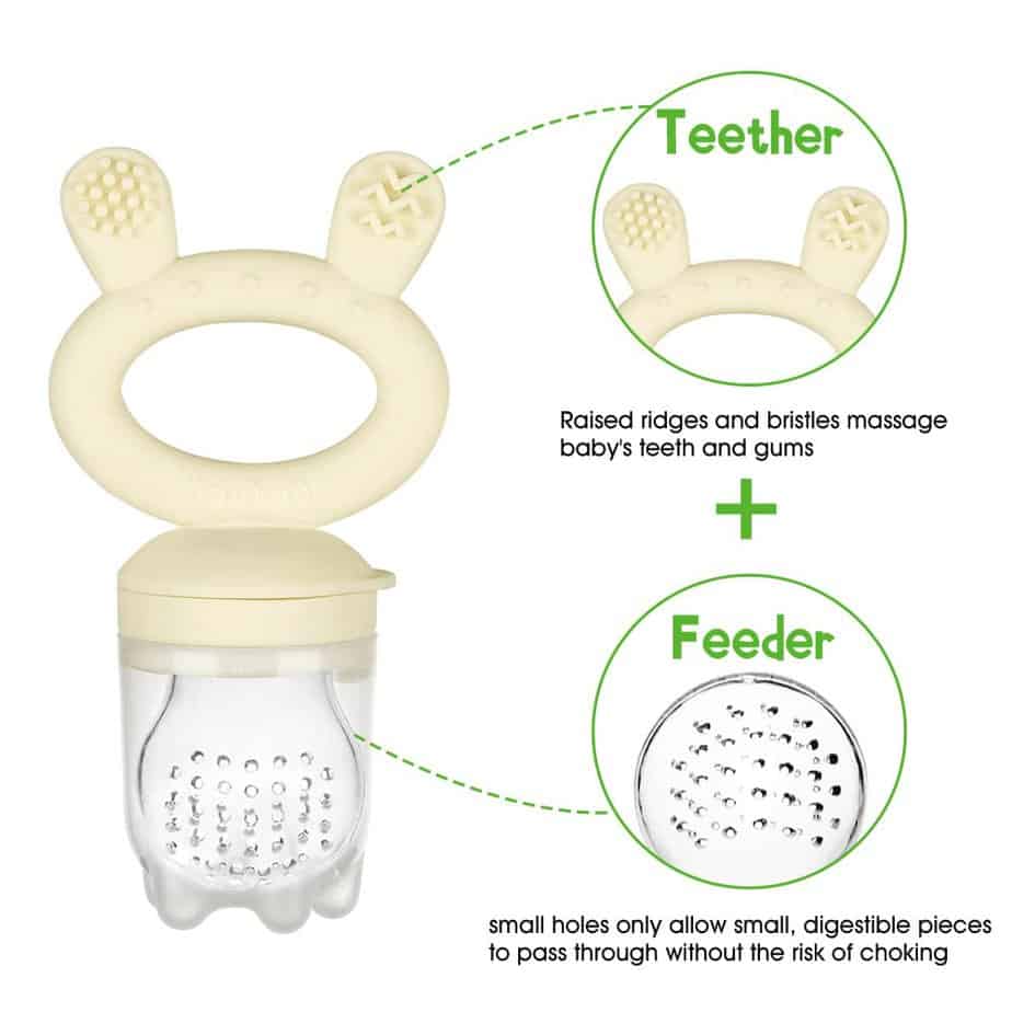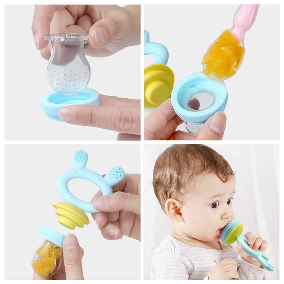 - A Must-have for Teething Babies: The baby fresh fruit feeder doubles as a teething popsicle mold, just put some baby food, fruit, purees or breast milk, juice for freezing, your baby will enjoy chewing and tasting it, help massage baby gums and soothe baby teething pain