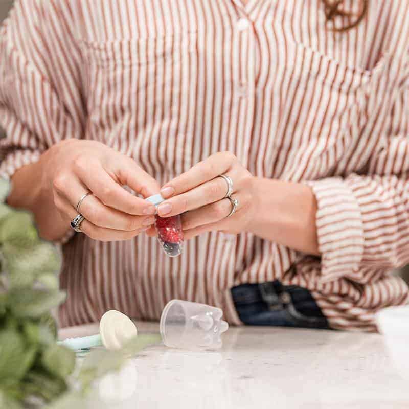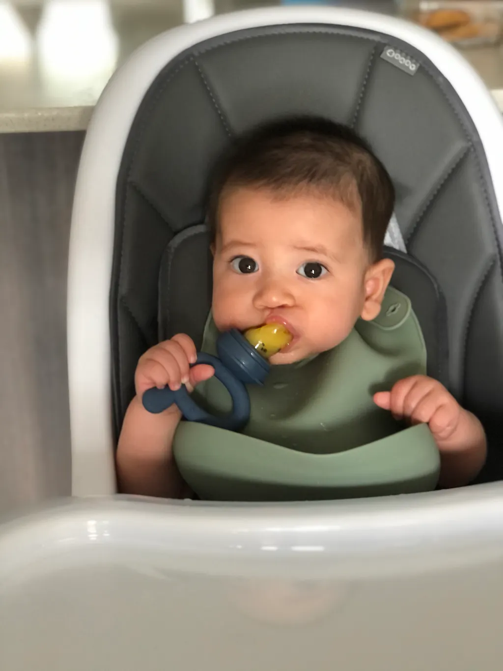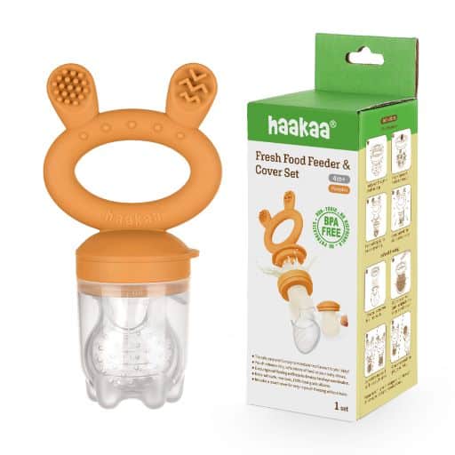 The Haakaa Fresh Food Feeding Teether is the perfect way to introduce solids into your babies diet without the risk of choking!