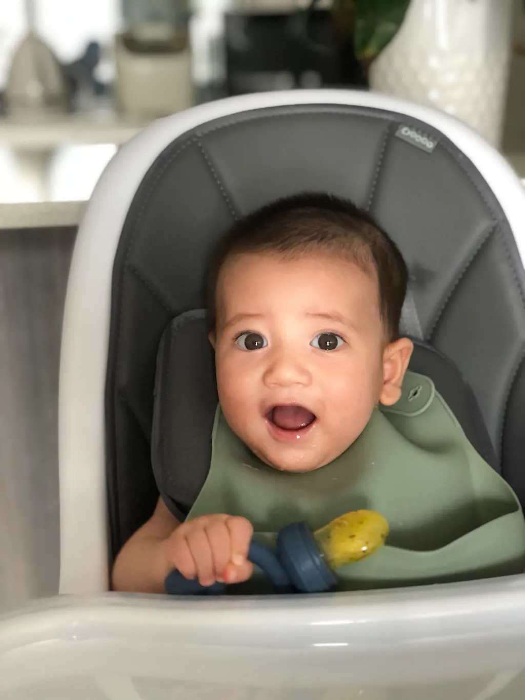 Solid food is recommended for babies 4-6 months +. Please consult your midwife or medical professional if introducing solids earlier.