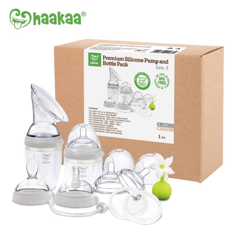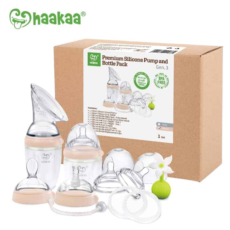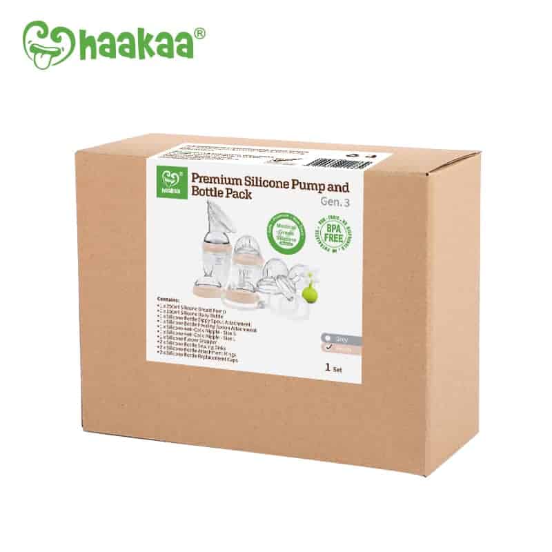 Simplify your breastfeeding journey and collect the entire Gen. 3 Silicone Pump and Bottle Series in the Haakaa Generation 3 Premium Pack! This pack has been designed to grow with your baby. Express, feed and store milk easily and effectively with Haakaa’s world-first 5-in-1 feeding system!