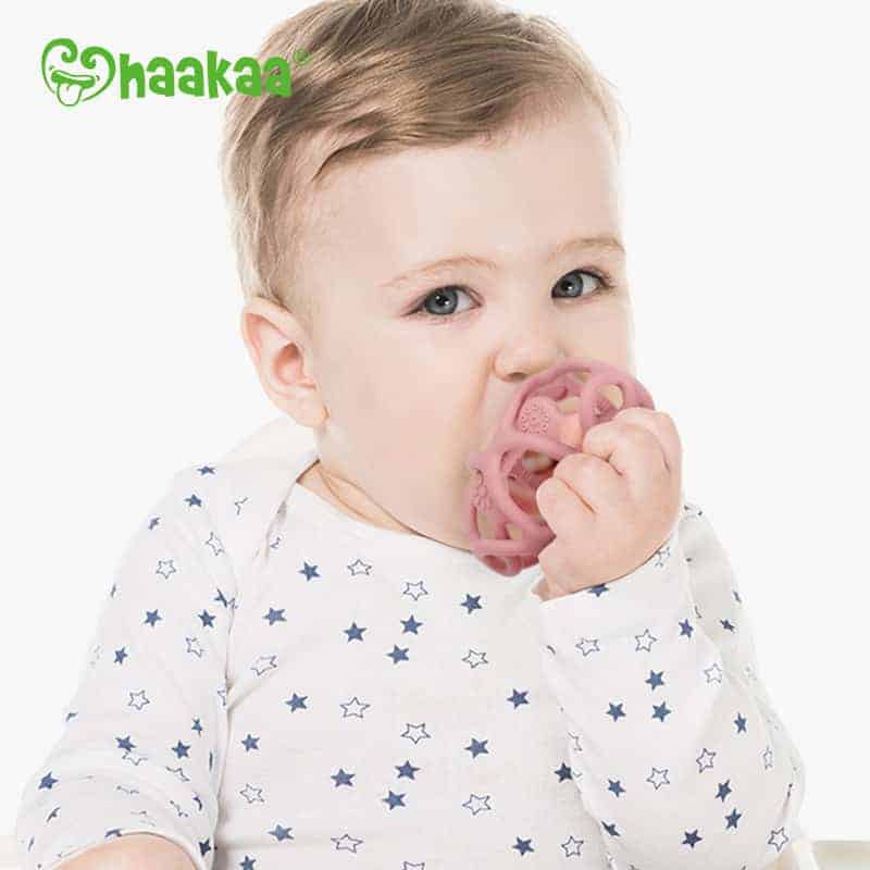 The Haakaa Silicone Teething Ball is the perfect tool for little ones who are starting to teethe. Its easy-to-hold shape and soft silicone frame is thin enough to fit in your baby’s mouth while still providing relief. You can also chuck out Teething Ball in the freezer to provide added cooling relief to those little aching gums!