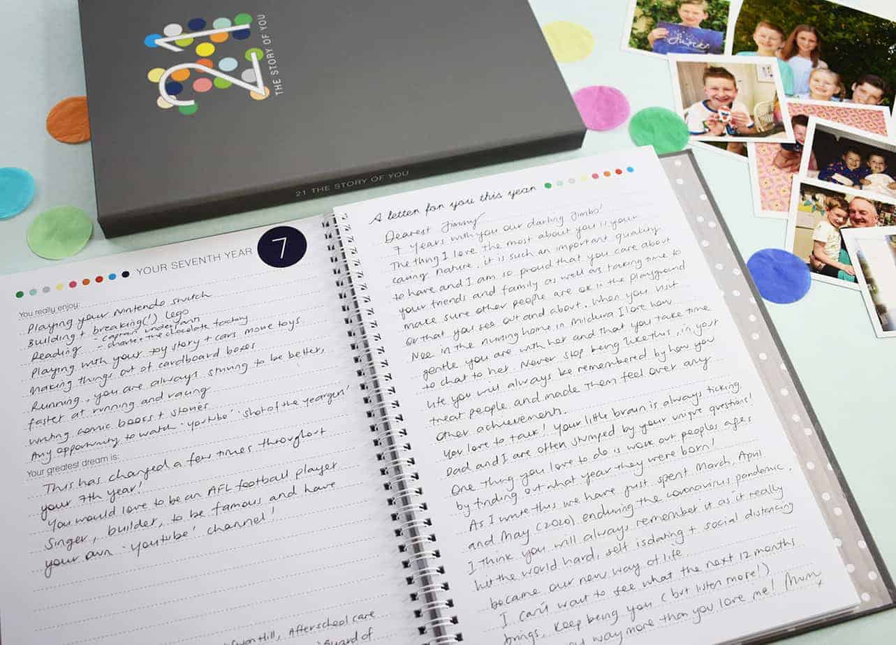 Introducing the follow on book from Rhicreative ‘Special Edition Baby Book’ the new keepsake ’21 THE STORY OF YOU’ captures the important memories from Age 1 – 21, a special book for your child to treasure. The book includes 4 pages for each age bracket, (prompted) details about that year, a page to write a letter to the child and then 2 blank pages for photos and other important memories eg: certificates, travel documents etc.