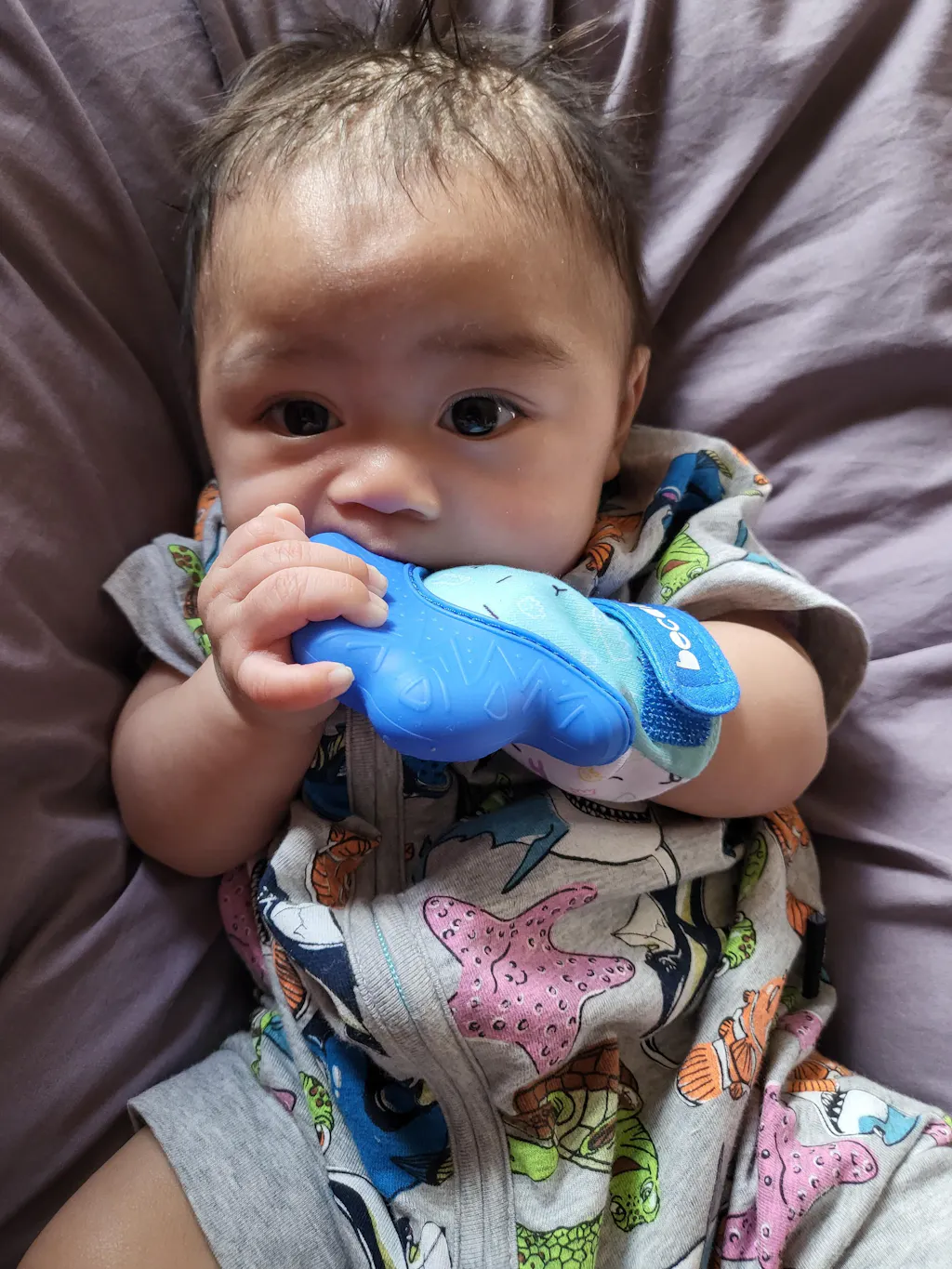 Our bub was a bit hesitant at first with the octopus teether, but having the different shapes and sizes helped him take the teether. He loves it now and brings relief to his sore gums. Thank you