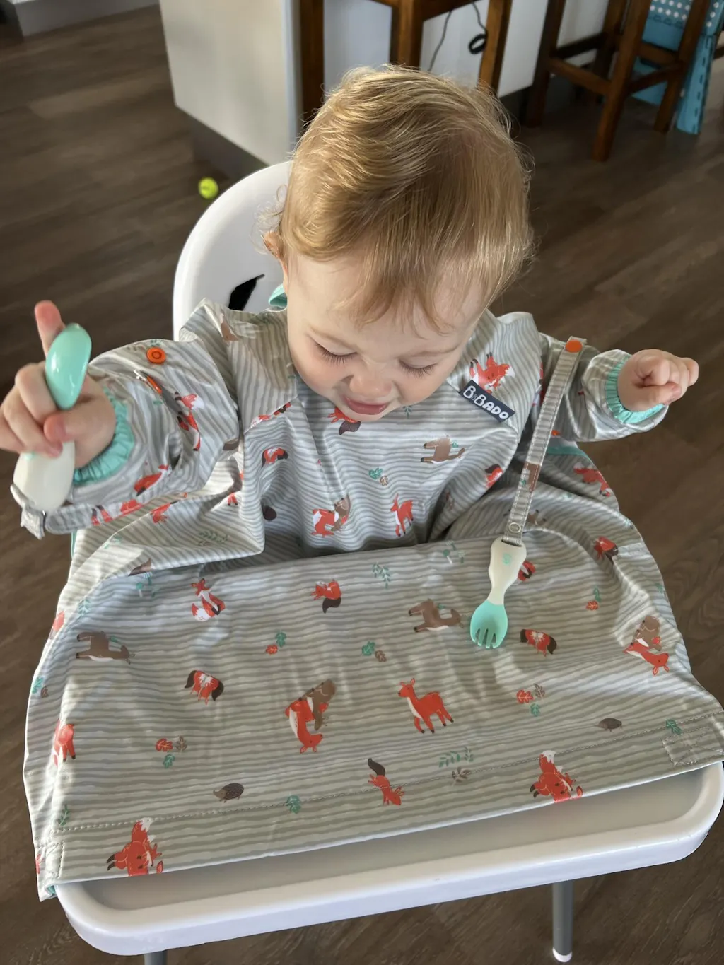 1000% recommend the bibado!!! Stops all the food getting wasted down the side of the high chair often dirtying pants! Clean up is a breeze clean a hand push it through the sleeve, clean other hand push back into sleeve, clean face then remove bibado with tray & baby is spotless!! Totally unbelievable to be honest!!! Bibado can be wiped cleaned between feeds and thrown in the wash every few days!! Love love love!! We have 4 🫣🥰